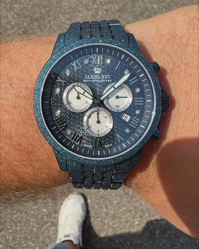 Tiefblau, kraftvoll und kompromisslos stilvoll: Die Infinity Blue bringt monochromen Look auf das nächste Level. Vom frosted Gehäuse bis zum schimmernden Zifferblatt – alles in einem satten Blauton, der das Licht bei jeder Bewegung neu einfängt. Zifferblatt, Gehäuse und Armband verschmelzen zu einem Look, der modern, clean und kompromisslos stylisch ist.