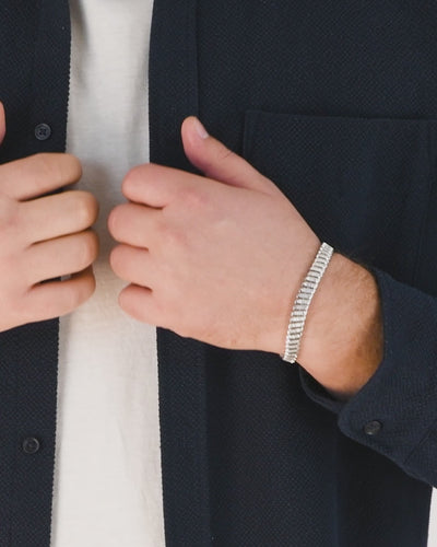 Dieses 8mm breite Armband aus S925 Sterlingsilber fällt aufgrund seiner markanten, zugleich harmonischen Gliederstruktur auf. Jedes polierte Element steht für Präzision und Balance. Royalty Heritage‑Steine im Baguette‑Schliff verleihen der Form Tiefe und Brillanz.