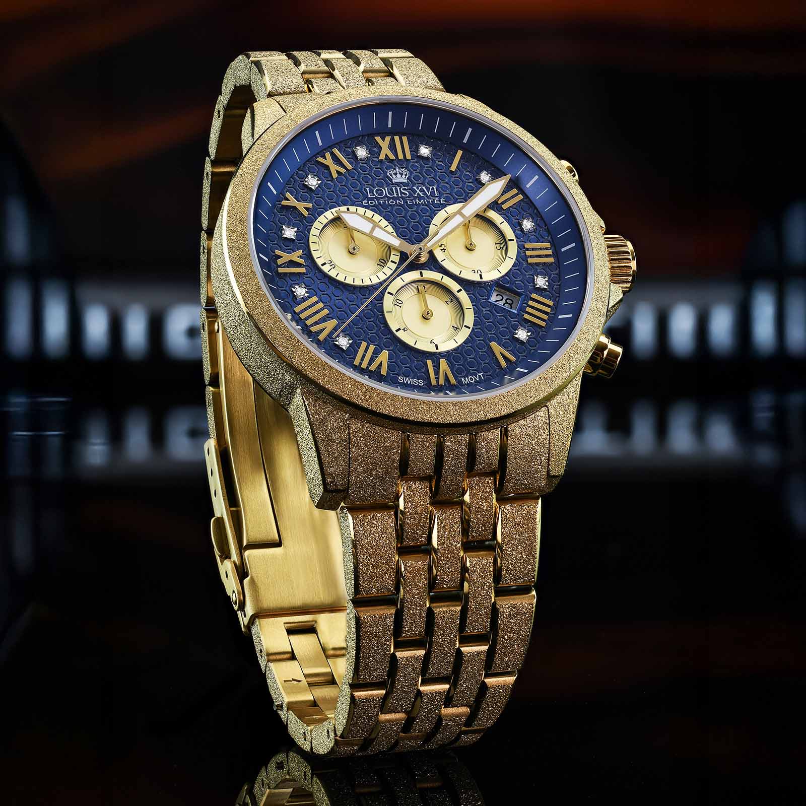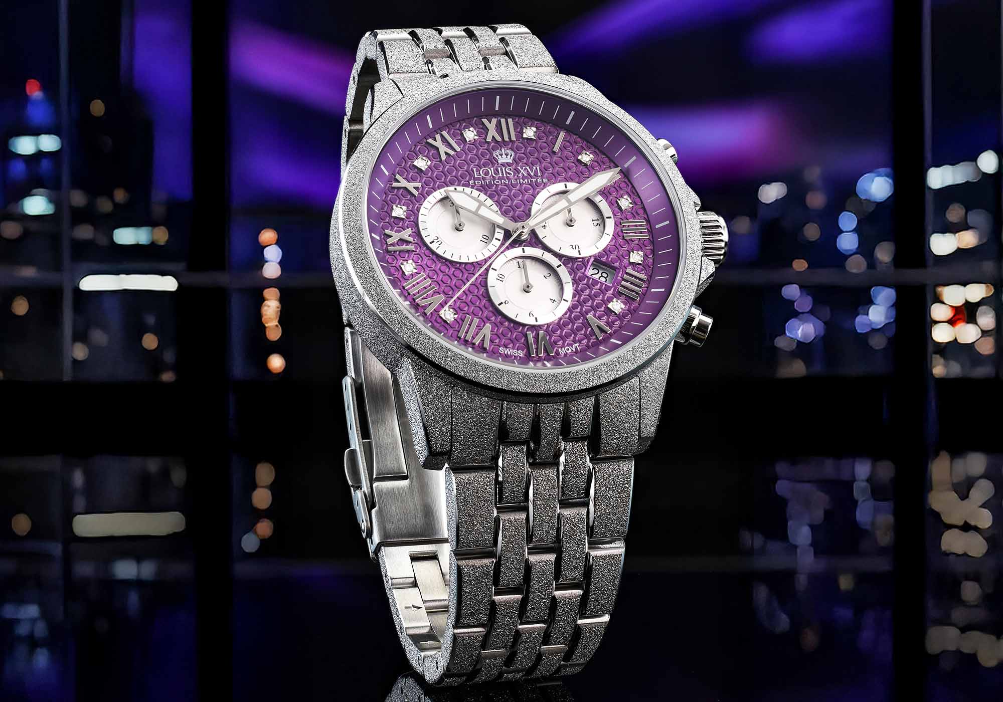 Every timepiece is refined with a special diamond-tipped technique that engraves thousands of fine facets into the metal. The result: a distinctive shine that makes the light dance with every movement.