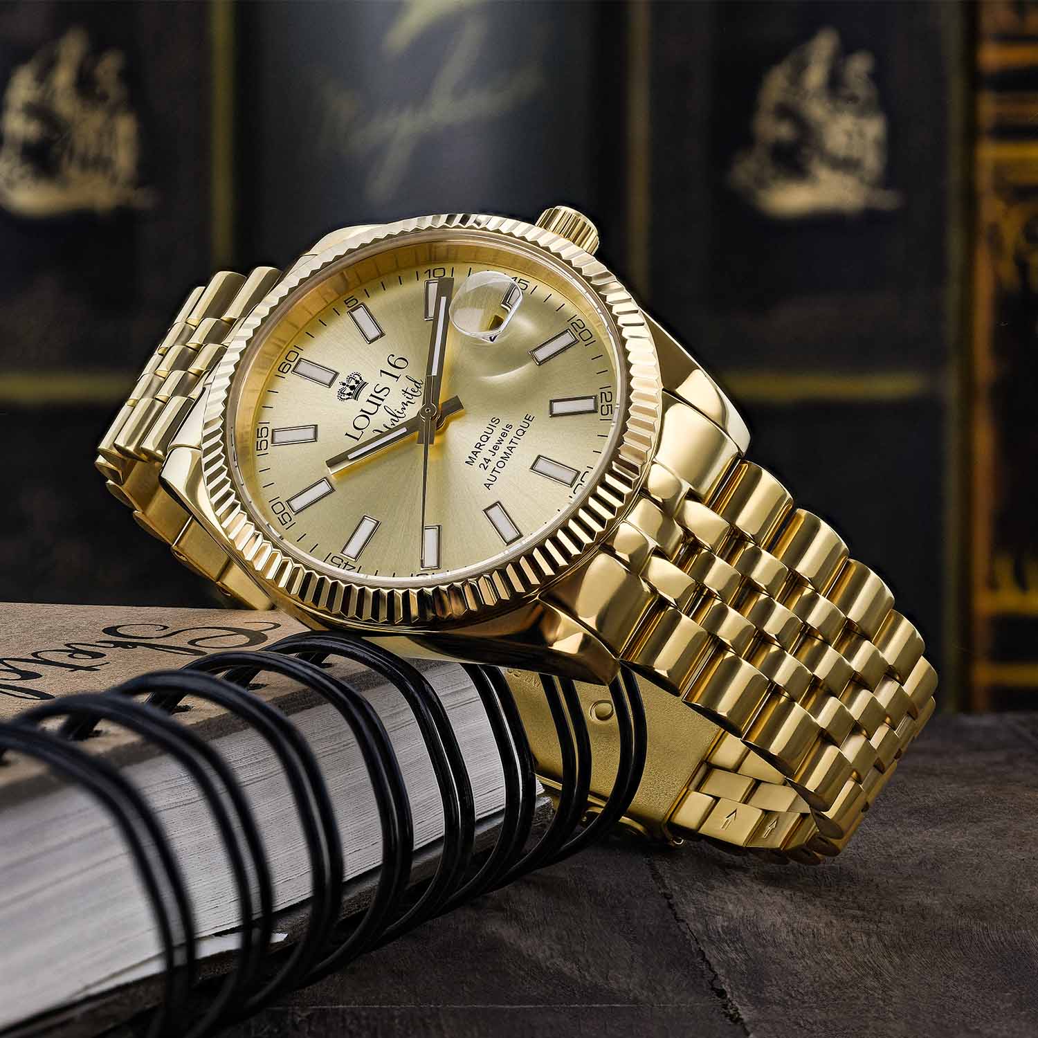 Each watch in the Marquis collection was designed for people who value class and quality. Whether in a shiny gold-gold finish or in striking black with silver indices – the Marquis collection combines tradition and modernity in an inimitable way.