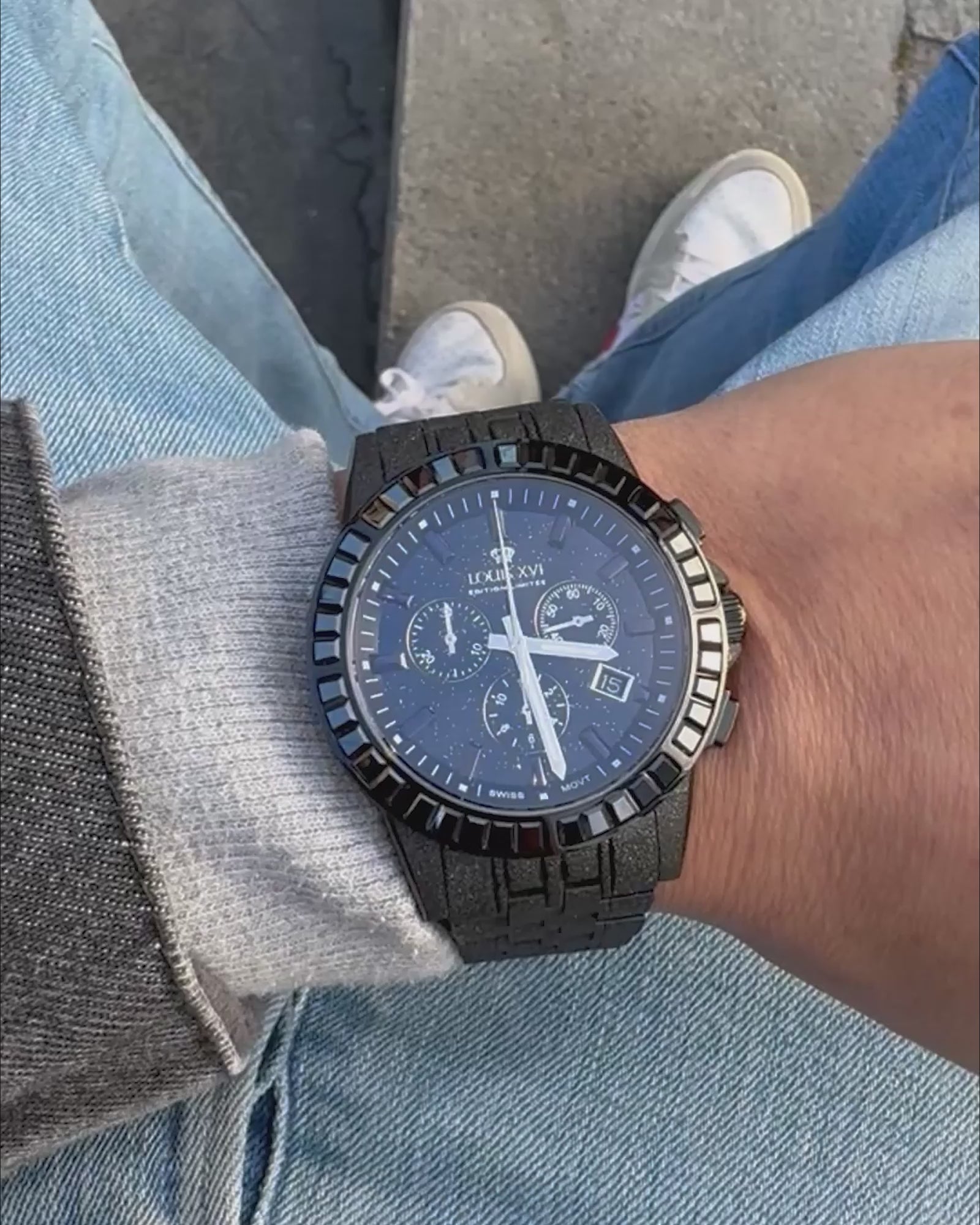 Le noir est de retour. La Majesté Frosted Iced Out 1184 – Black Caviar Edition célèbre l'élégance puissante de la couleur noire et l'exprime dans une interprétation élégante et moderne. Avec sa finition PVD givrée noire profonde et ses étincelantes pierres de zirconium cubique noires, cette montre allie raffinement intemporel et design exclusif. Le contraste saisissant entre la surface mate et les pierres brillantes Black Caviar fait de cette montre un accessoire exceptionnel pour chaque occasion.