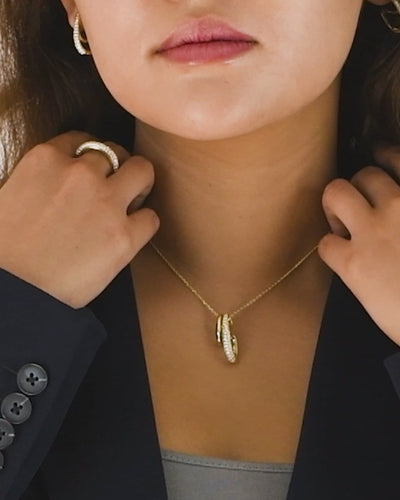 La chaîne en argent sterling S925 porte un pendentif de 25 mm de haut, composé de deux gouttes allongées : un élément lisse poli pour une lueur tranquille, une goutte pavée de zircon pour un éclat délicat. Ensemble, ils créent un look sculptural et moderne avec une élégante légèreté.