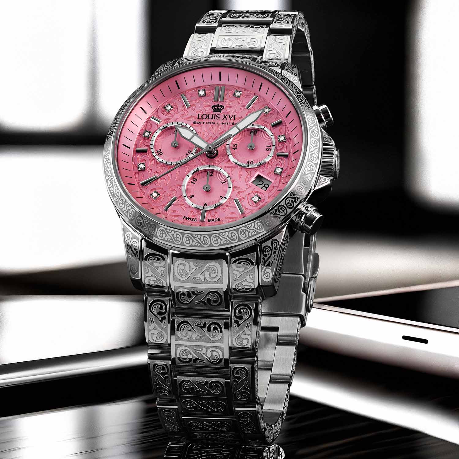 La collection est conçue pour être élégante et en même temps adaptée au quotidien. Que ce soit au bureau, lors d'un dîner ou en déplacement – cette montre s'adapte à toi et te permet de briller à chaque instant.