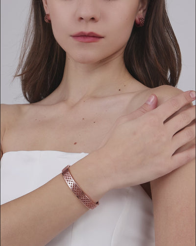 Die Roségold-Variante des AJOURÉ Armbands verbindet die offene Blütenstruktur mit einem warmen, sanften Farbton. Dadurch entsteht eine ausgewogene Wirkung zwischen Eleganz und Weichheit – ein Schmuckstück, das sich mühelos in unterschiedliche Stilrichtungen integrieren lässt.