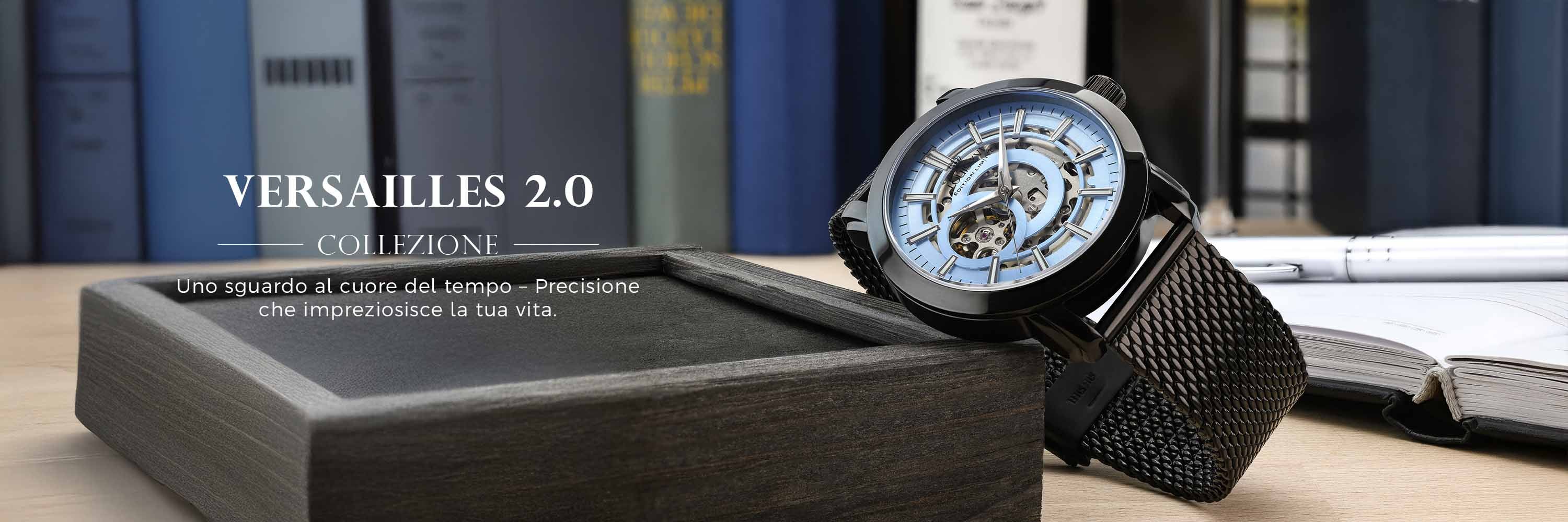 Il mondo è pieno di sfide, e la Versailles 2.0 è pronta per ognuna di esse. Dotata di vetro zaffiro resistente ai graffi e di una cassa in acciaio inossidabile 316L di alta qualità, resiste al tuo stile di vita attivo. Non solo ha un aspetto fantastico – lo rimane, qualunque cosa accada.