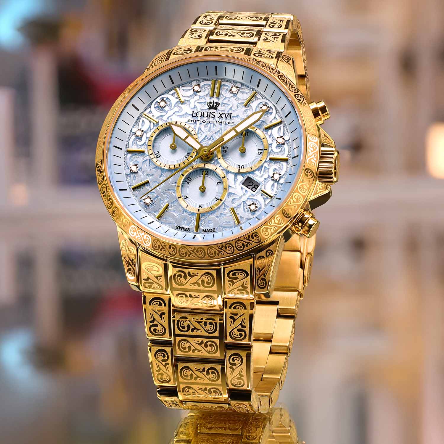 È passato molto tempo, quasi 5 anni, da quando è stata sviluppata la prima versione del Palais Royal. Da allora ci sono state molte versioni con indici, numeri romani, lancette luminose verdi, lancette luminose blu fino a quadranti iced-out e versioni inked. LOUIS XVI si è fatto un nome con gli orologi della collezione Palais Royal.